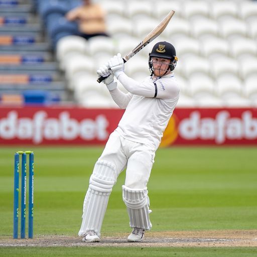 Clark went down the wicket to hoist Brett D’Oliveira for a straight six but in the next over he was brilliantly caught down the leg side by the diving Gareth Roderick off the persevering Dillon Pennington after adding 83 in 27 overs with Alsop.