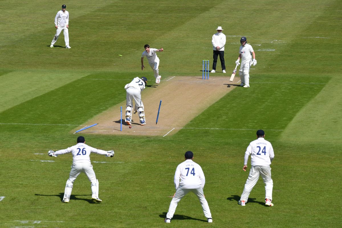 Yorkshire then lost wickets regularly. Gary Ballance, playing his first game since September 2019, was well taken at second slip, one of two victims for left-armer Sean Hunt who also picked up Jonny Tattersall (7), while three wickets fell to spin.