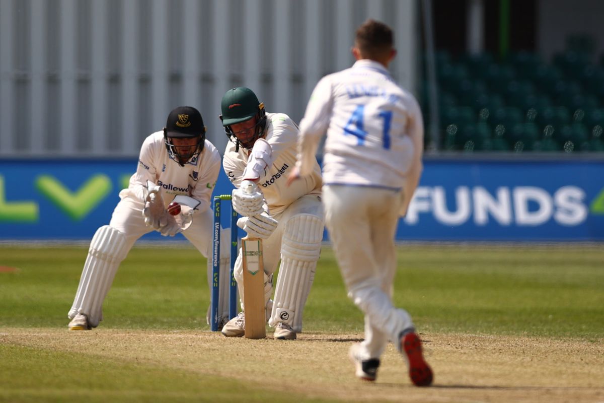 Earlier the visitors had looked certain to end a run of 17 championship matches without victory when shortly after the start of play, leg-spinner Archie Lenham had dismissed Rishi Patel with a ball that bounced a little more than the batter anticipated, took the inside edge and was well caught by Tom Alsop at short leg.